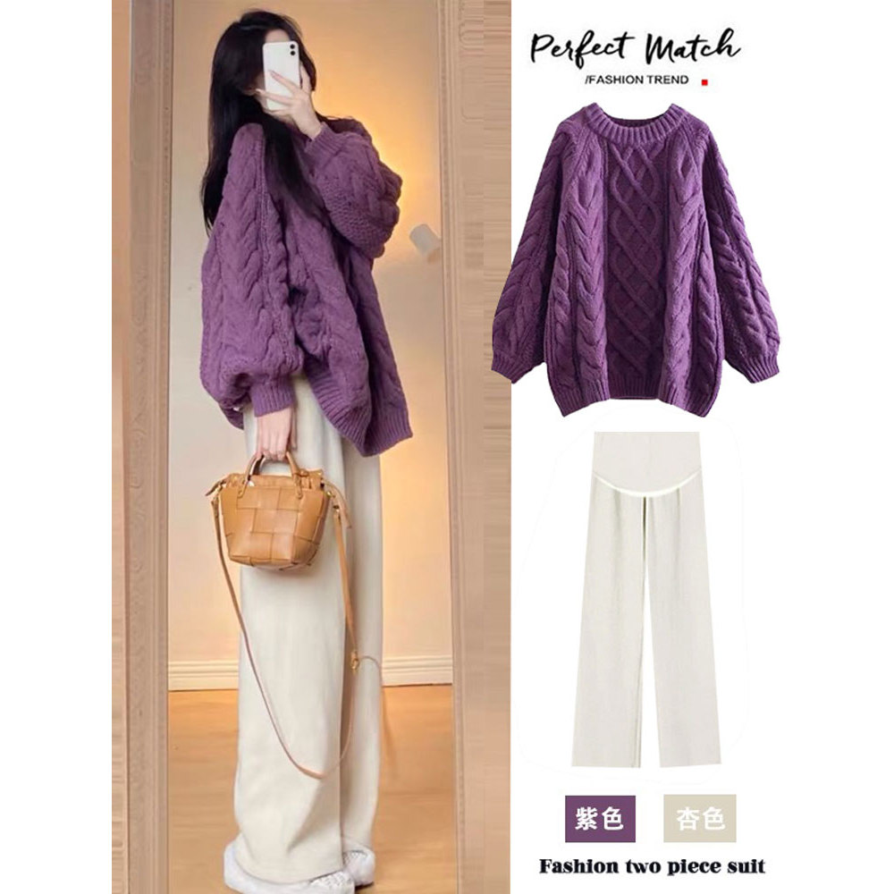 Terno de maternidade outono inverno estilo 2025 novo estilo camisola superior solta forro de lã calças de perna larga te
