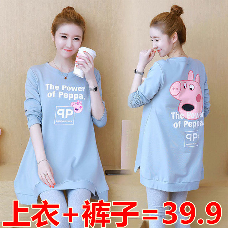Roupa de maternidade outono primavera engrossado em torno do pescoço moletom 2026 novo estilo terno solto mais magro olh