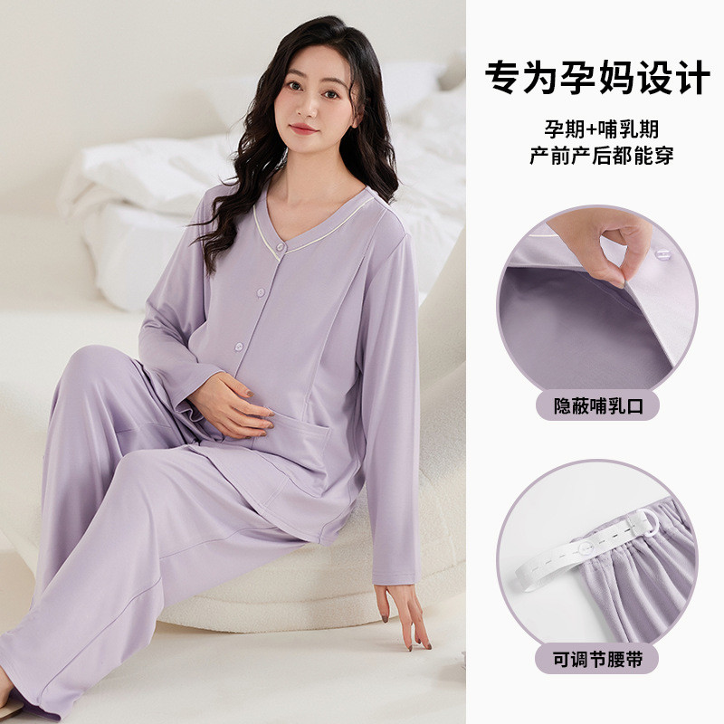 Langsha Senhoras Roupas de Confinamento de Manga Comprida Pós-parto Quatro Estações Maternidade Abertura Lateral Roupas