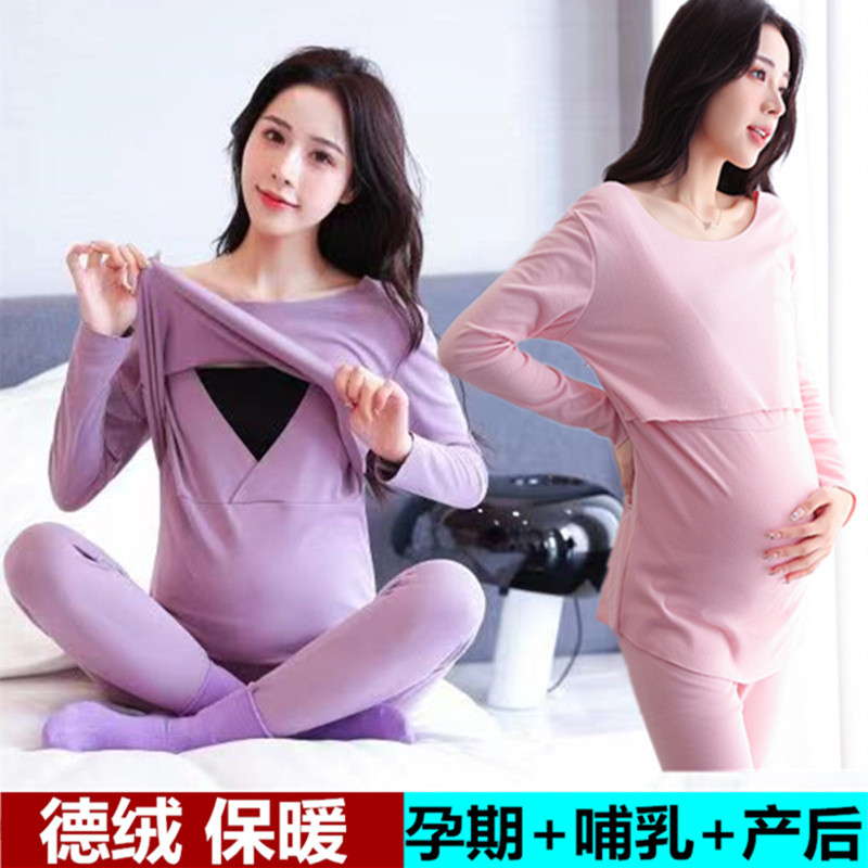 Maternidade roupas de outono calças compridas terno velo-velo roupas quentes outono inverno pós-parto amamentação roupas