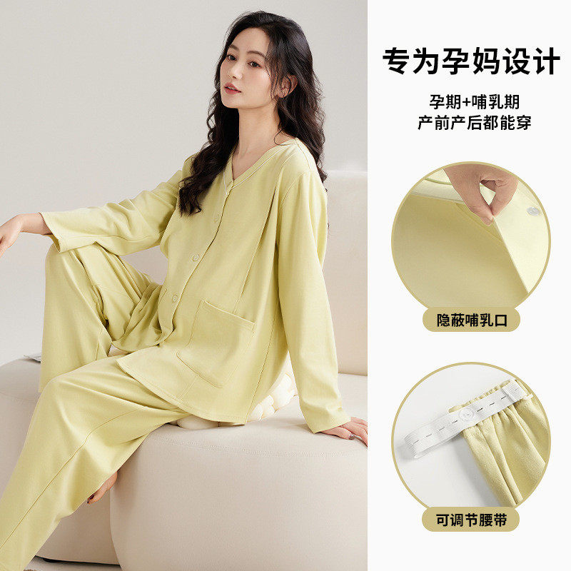 Atacado roupas de confinamento outono inverno manga comprida algodão fino enfermagem mulheres grávidas pós-parto pijamas
