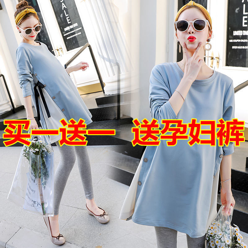 Fisher vestido de maternidade moda inverno solto cinta saia 2025 novo estilo outono inverno camisola de duas peças terno
