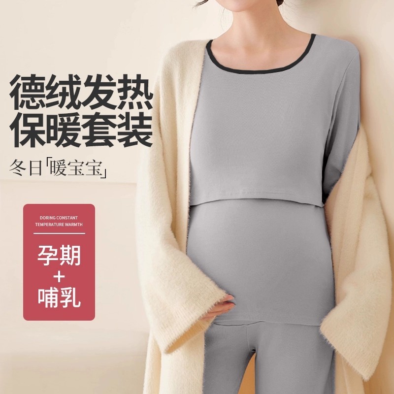 Maternidade roupas de outono calças compridas terno roupa interior térmica outono inverno alemão veludo enfermagem pijam