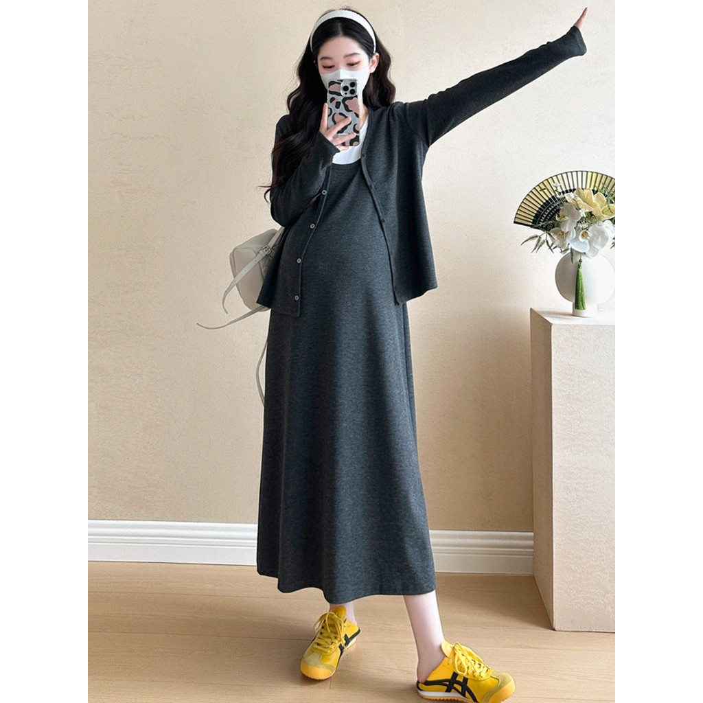Vestido de maternidade terno outono inverno 2025 novo estilo High-End estilo ocidental camisola jaqueta colete saia de m