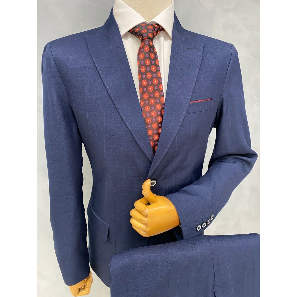 Comprar na ShopeeTerno Principe de Gales Lapela Larga Pespontado Casemira Azul Marinho Quadriculado Nova Modelagem