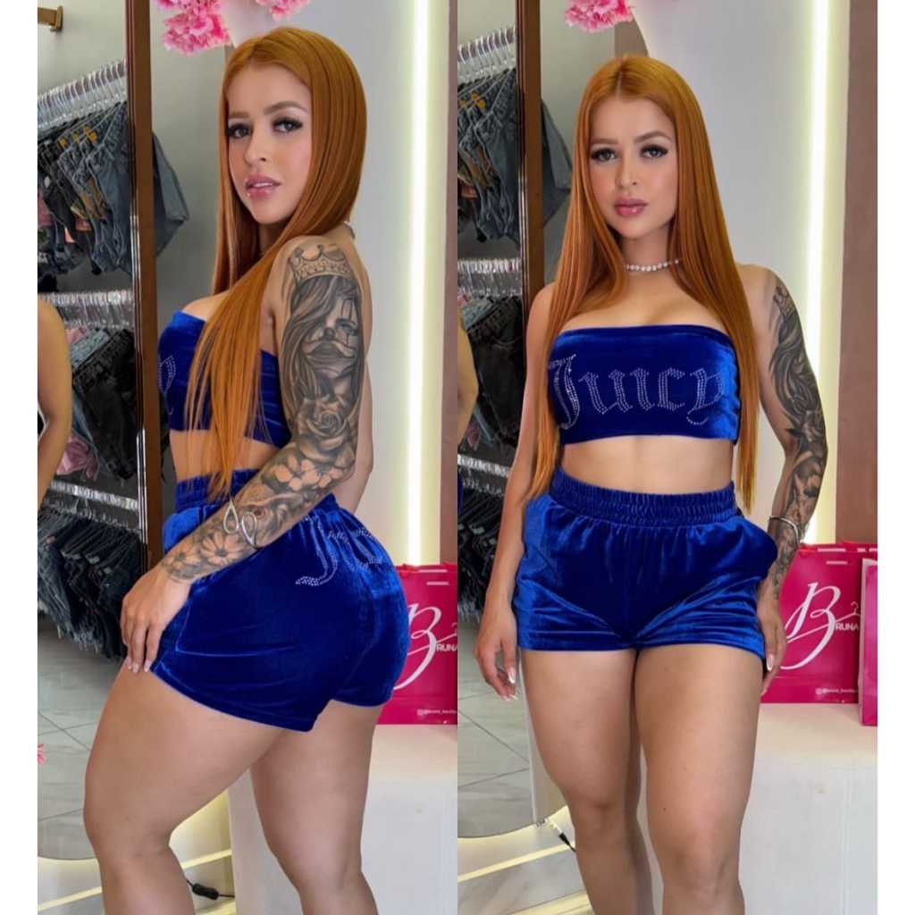 Comprar na ShopeeConjunto Feminino Bloguera 2 Peças Short Curto + Top Faixa Veludo