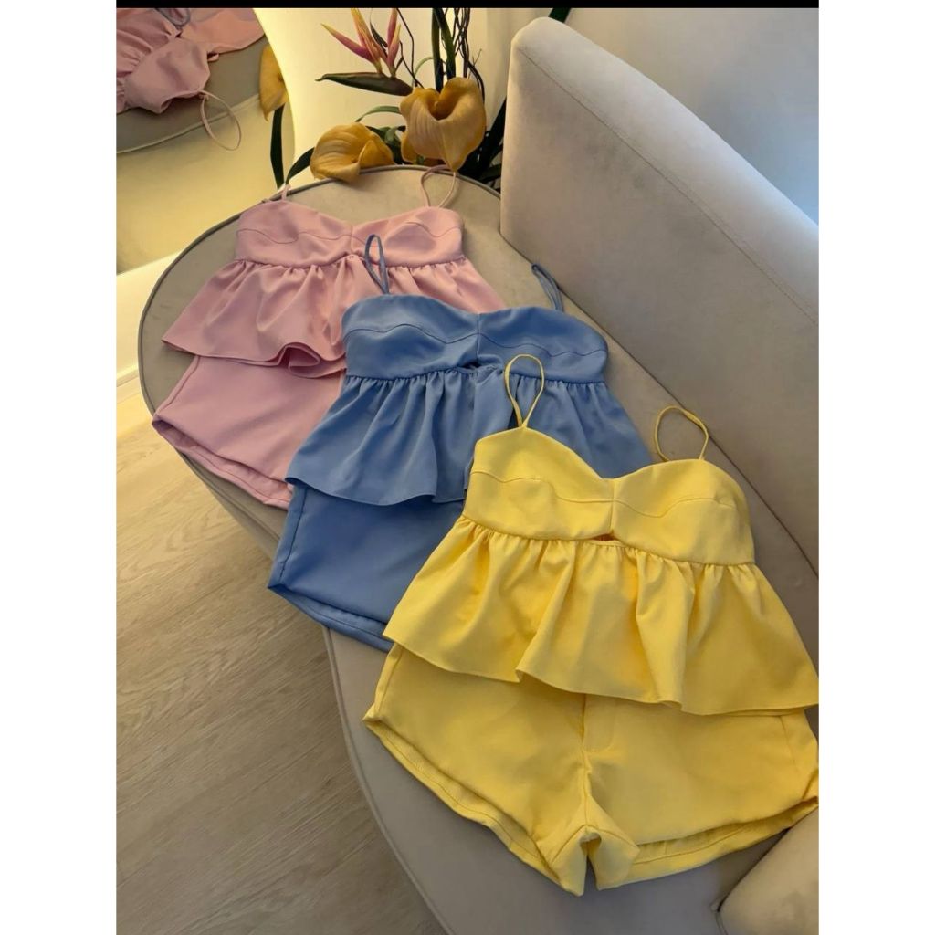 Comprar na ShopeeConjunto Feminino (SHORT+CROPEED) tecido alfaiataria com bojo tendência social