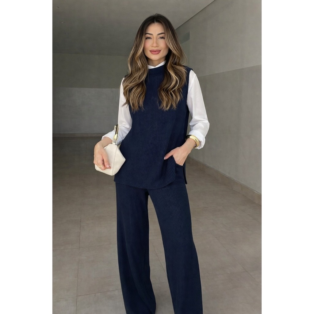 Comprar na ShopeeConjunto Tricot Feminino Max Colete Regata e Calça Pantalonacom Bolso Moda Outono Inverno Aerolook