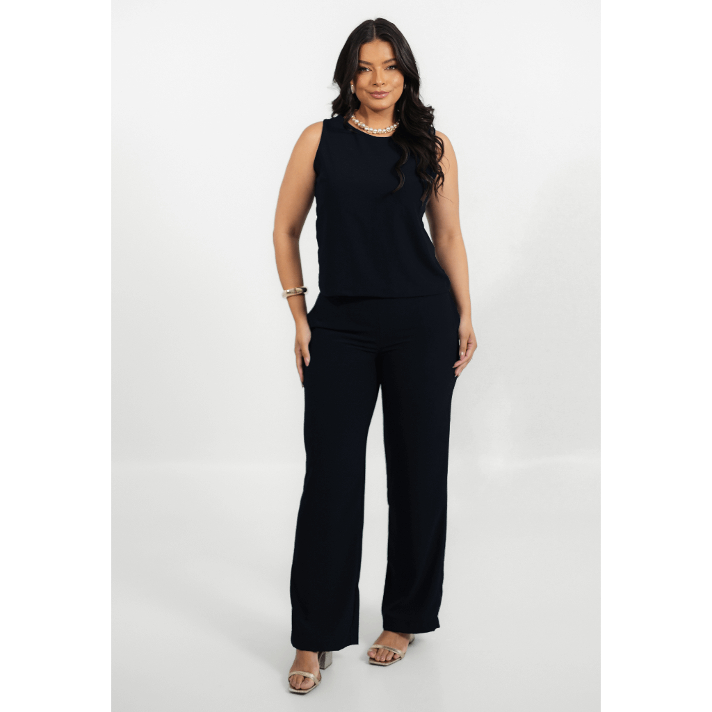 Conjunto Feminino Alfaiataria Social Casual Calça Pantalona Blusa Regata - Raquel