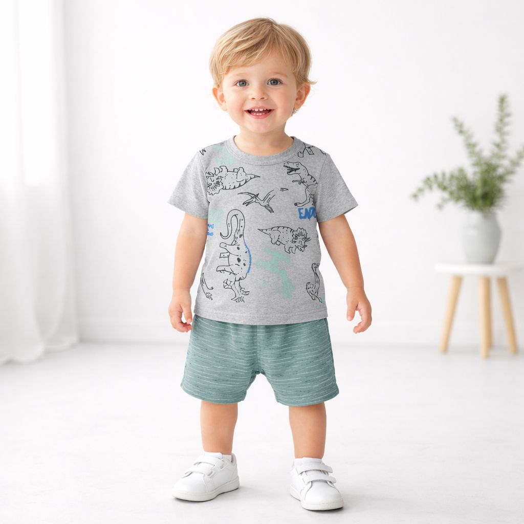 Comprar na ShopeeConjunto Infantil Menino Bebê Camiseta Estampada + Shorts Confortável Roupa Infantil Casual Verão | P ao GG | REF 2422
