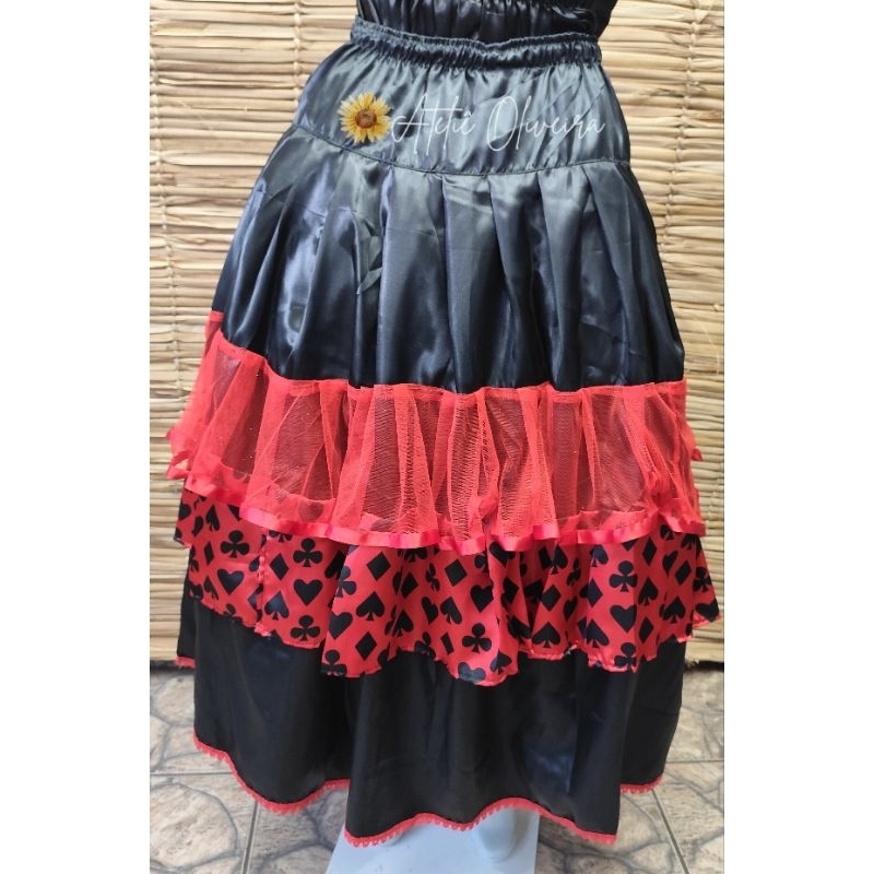 ROUPA FEMININA LUXO BAIANA POMBA GIRA 3PÇS ESTAMPADA PRETO E DOURADO UMBANDA CANDOMBLÉ