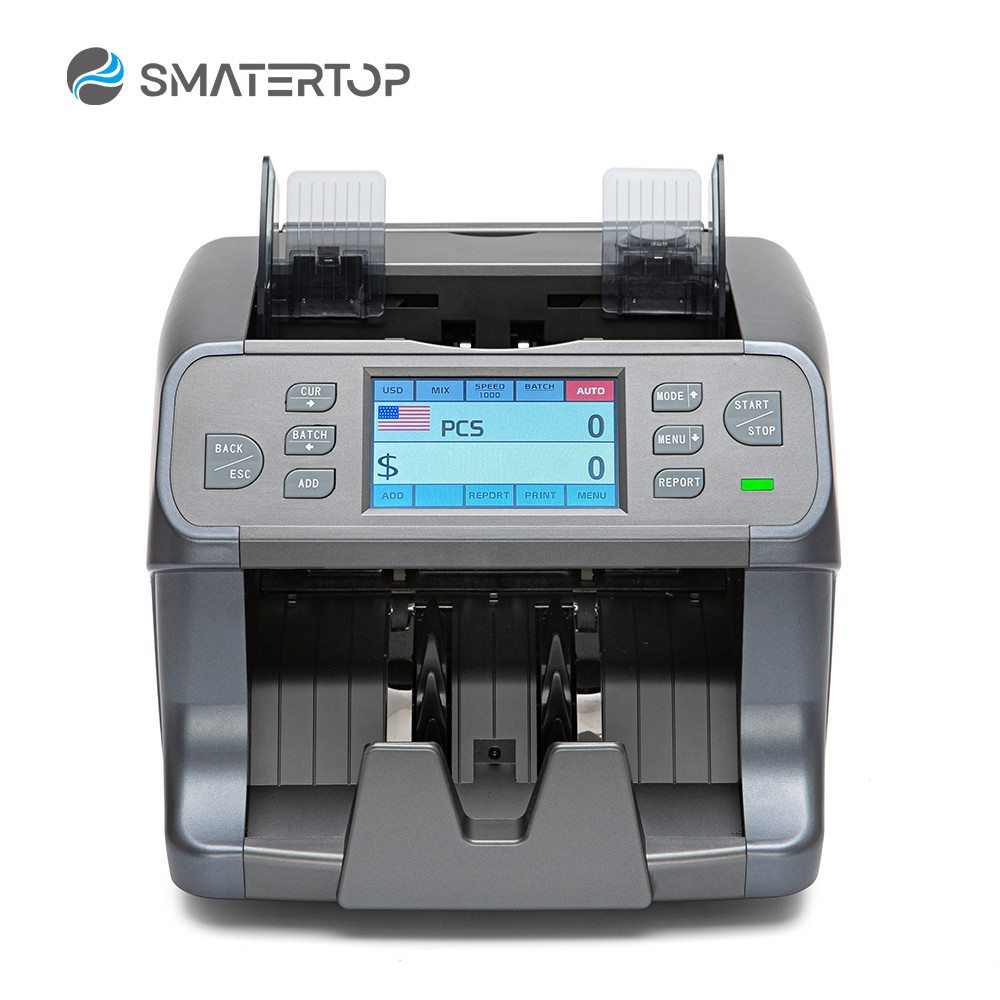 AL-955 Classificador De Dinheiro De Dois Bolsos Tela Sensível Ao Toque Contada Moedas Mistas Multi-Banknote Bill Contado