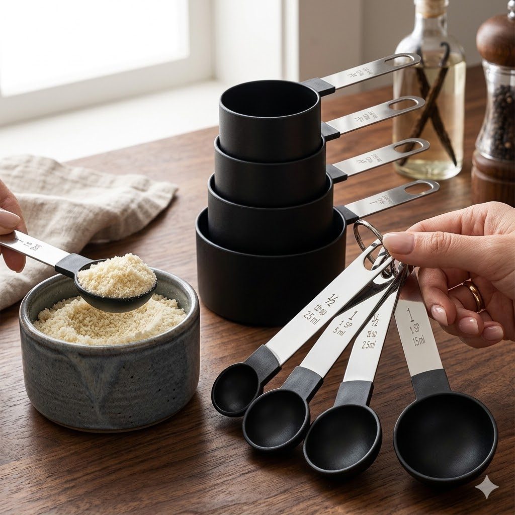 Comprar na ShopeeMedidor Culinário Inox Colher Copo Xícara Cozinha Preto 8pçs