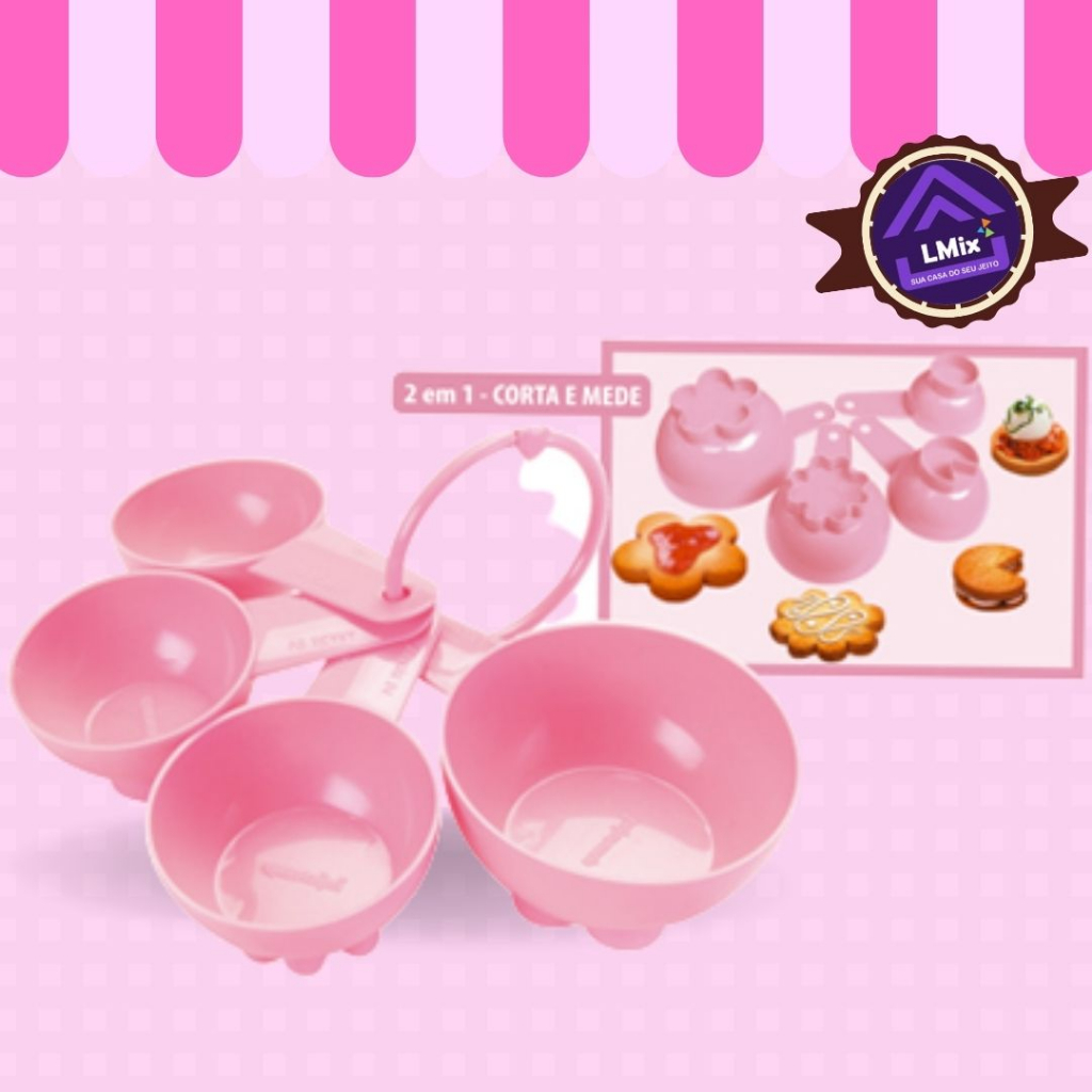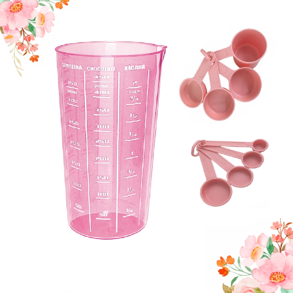 Comprar na ShopeeMedidores kit Medida 9 peças Rosa (4 xícaras, 4 Colheres, Copo Graduado)
