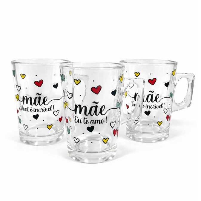 Jogo Xícaras Vidro 170ml, Mães, Ideal Para Cestas, Kits Presentes, Dia Das Mães