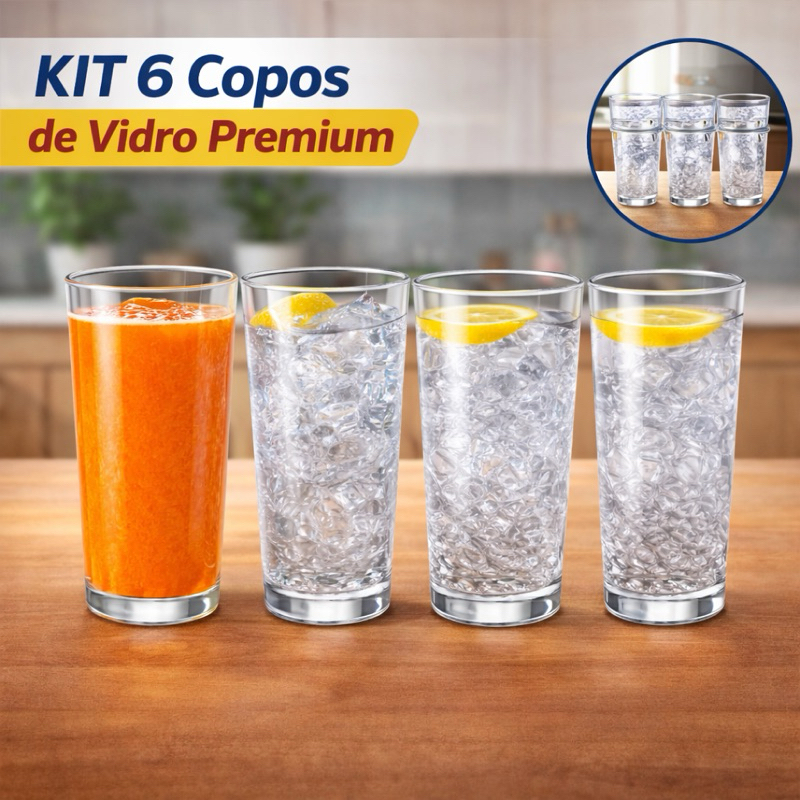 Comprar na ShopeeKit 6 Copos De Vidro Reforçado Grosso 300ml Para Suco Água Refrigerante Sofisticado