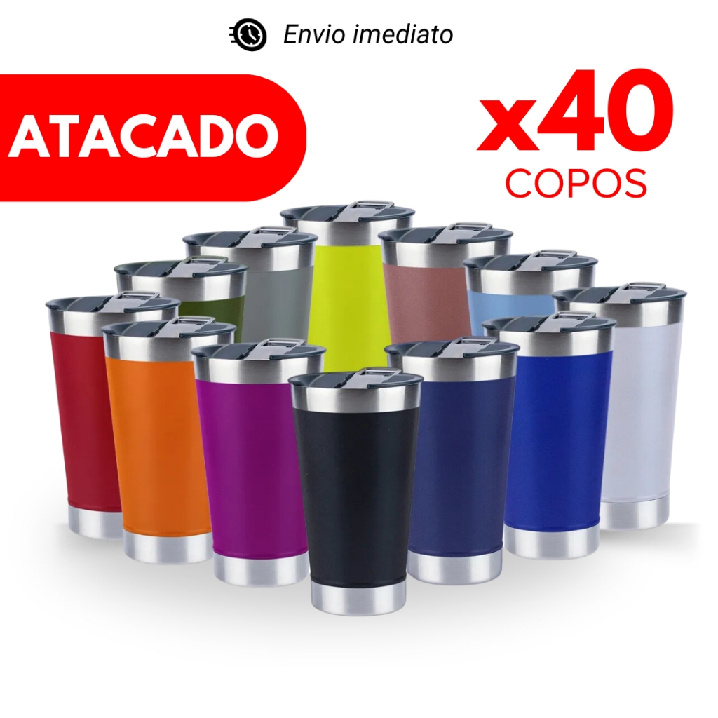 Comprar na ShopeeKit 40 Copo Térmico 473ml Com Tampa e Abridor de Garrafas OFERTA Copo Inox Sublimação Sortidos