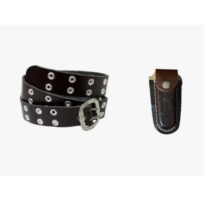 Kit de Cinto Muladeiro Infantil com Bainha para Canivete em Couro pra Crianças