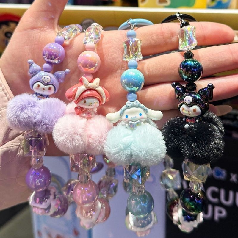 Sanrio Cartoon Kuromi Melodia Cinnamoroll Pochacco Contas Telefone Cordão Chaveiro Saco Pingente Acessórios Chave Do Car