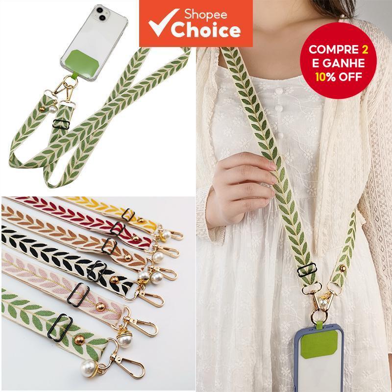 Comprar na ShopeeEstilingue De Ombro Longo Ajustável Para Telefone : Cordão De Pano Largo Crossbody Com Alça De Pérola E Função De Chavei