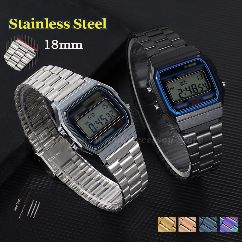 Pulseira De Relógio Retrô De Aço Inoxidável De 18 Mm Para Casi F91W F84 F105/108/A158/168 AE1200/1300 SGW400 De Metal Co