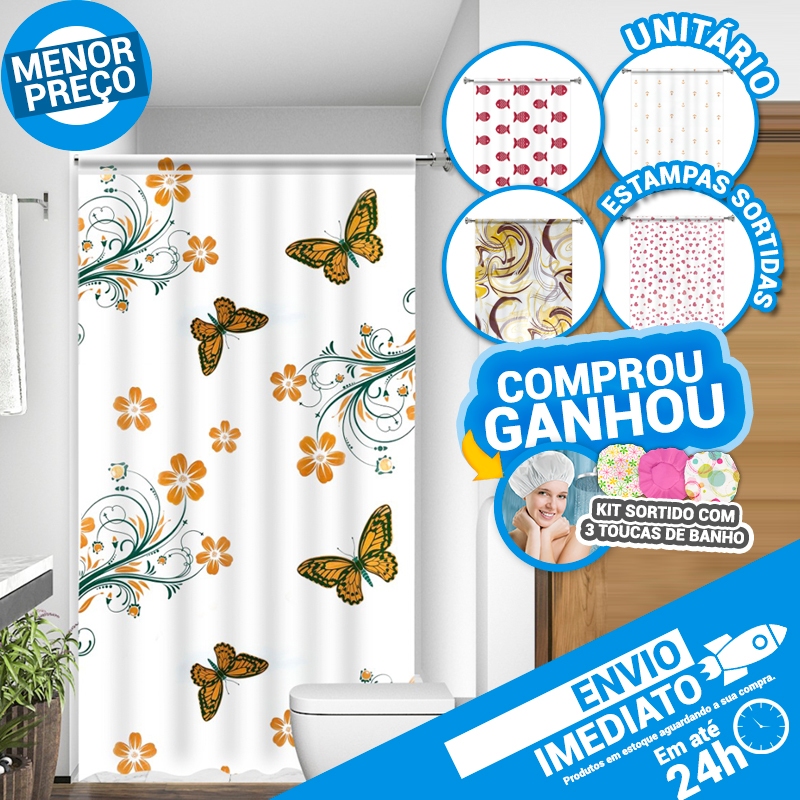 Comprar na ShopeeCortina Para Box de Banheiro PE Uso Direto ao Suporte Acabamento em Viés Estampada Sortidas