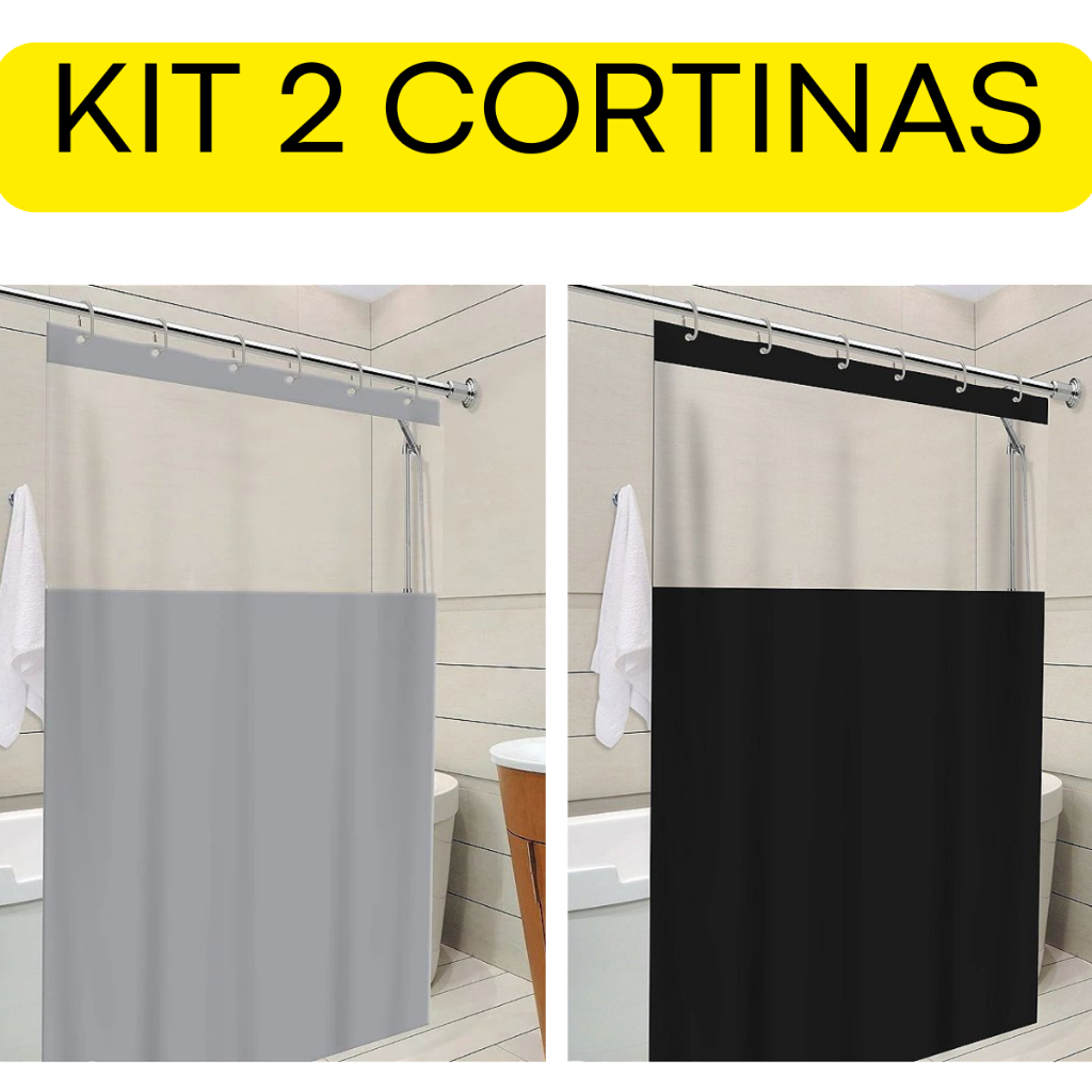 Comprar na ShopeeKit 2 Cortinas De Box Lisa Em PVC Para Banheiro Impermeável Com Ganchos