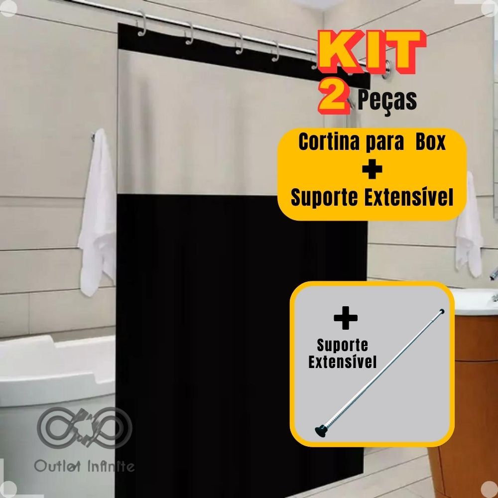 Cortina Box Banheiro Com Visor Lisa Antimofo C/ Ganchos + Suporte de Cortina