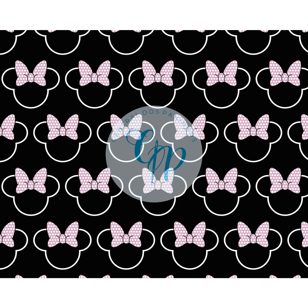 Sintético Doll Estampado - Minnie mini laços - fundo preto - 0,50 x 1,38