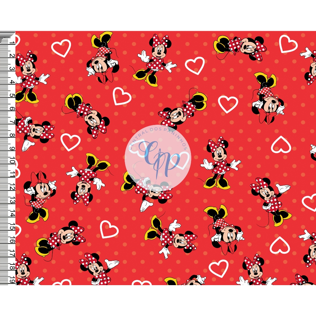 Sintético Doll Estampado - Minnie - fundo vermelho - 0,50 x 1,38