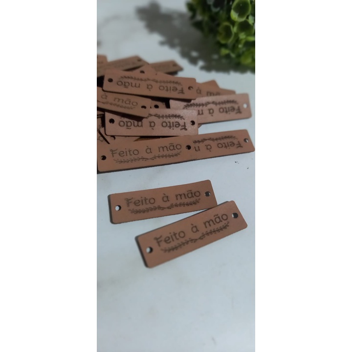 Etiqueta Couro Sintético "Feito à Mão" - 30 Unidades