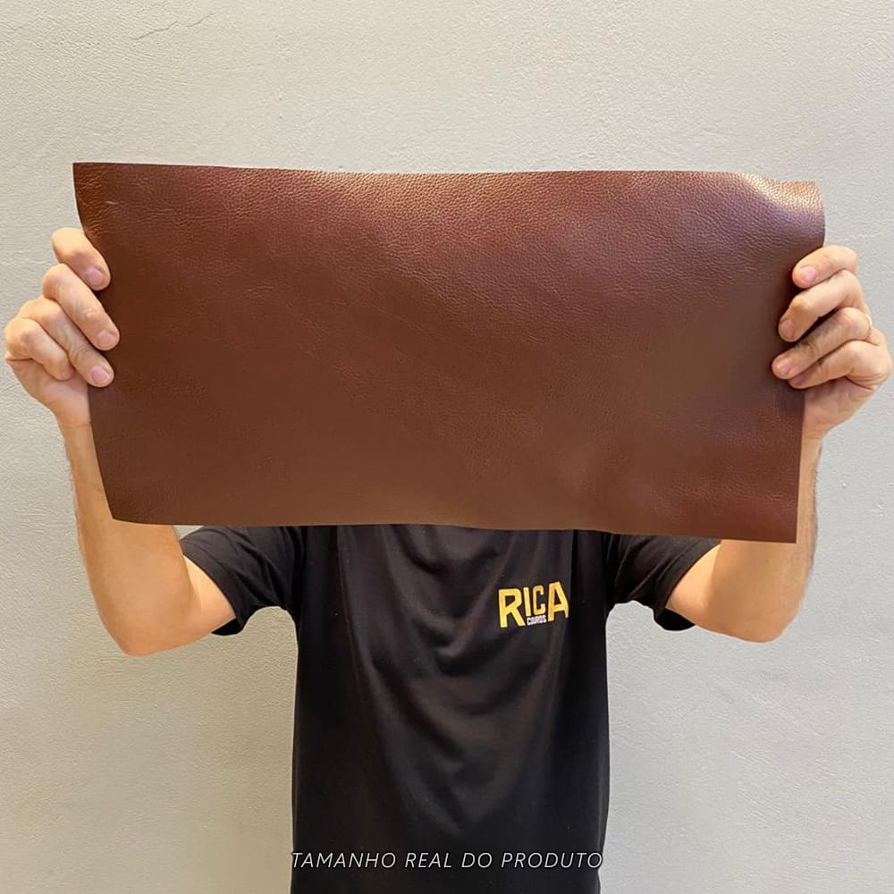 Painel de Couro Genuíno Tipo Floater 25x50cm Placa - Retalho - Textura Encorpada 14/16 Linhas - Cor: Conhaque