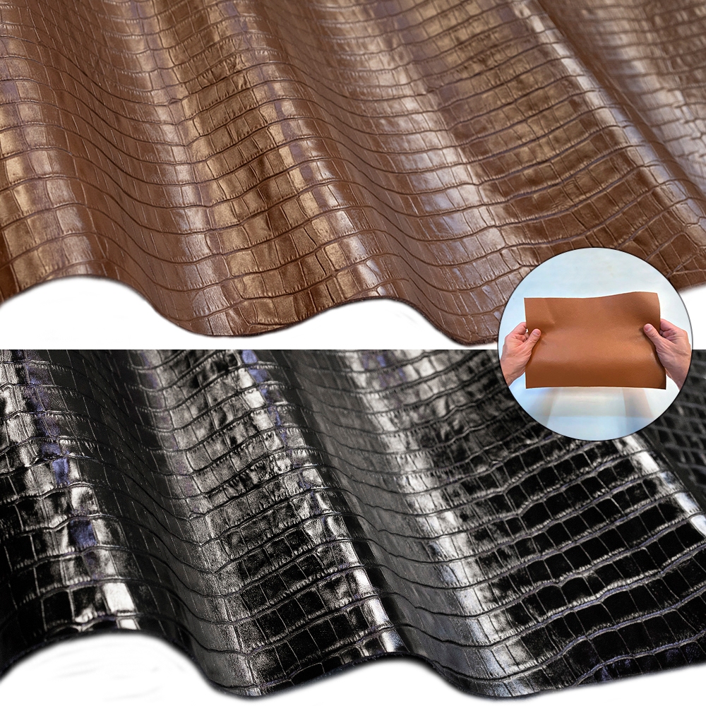 Kit 2 Placas Couro Genuíno 25x35cm tipo Croco - Painel Retalho Couro Bovino - Textura Estampada Luxo 10/12 linhas