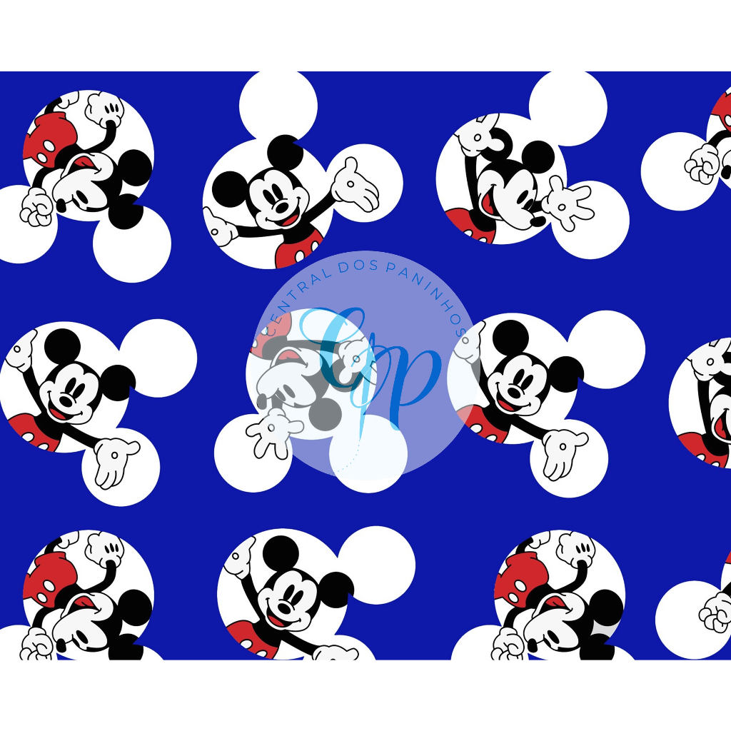 Sintético Doll Estampado - Mickey carinhas - fundo royal - 0,50 x 1,38