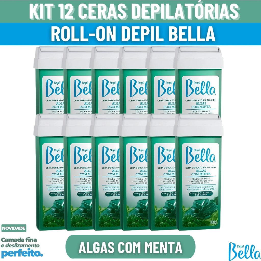 Comprar na ShopeeKit 12 Refil Cera Depilatória Algas com Menta Roll-on 100g Depil Bella Depilação