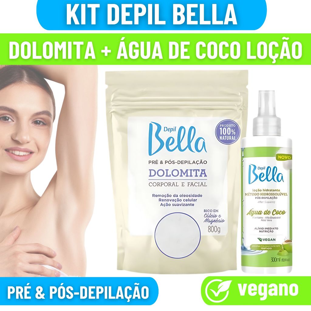 Comprar na ShopeeDolomita Pré Pós Depilação Depil Bella 800g + Loção Hidratante Água de Coco 300ml