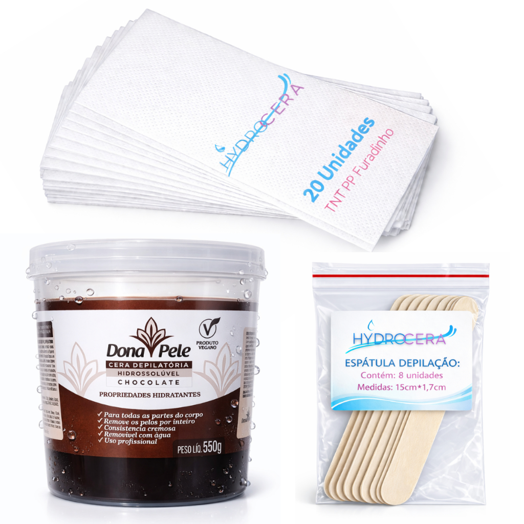 Comprar na ShopeeCera Vegana Chocolate 550g para todo Corpo e Virilhas Donapele + Lenço TNT 20F.+ 8 Espátula Madeira