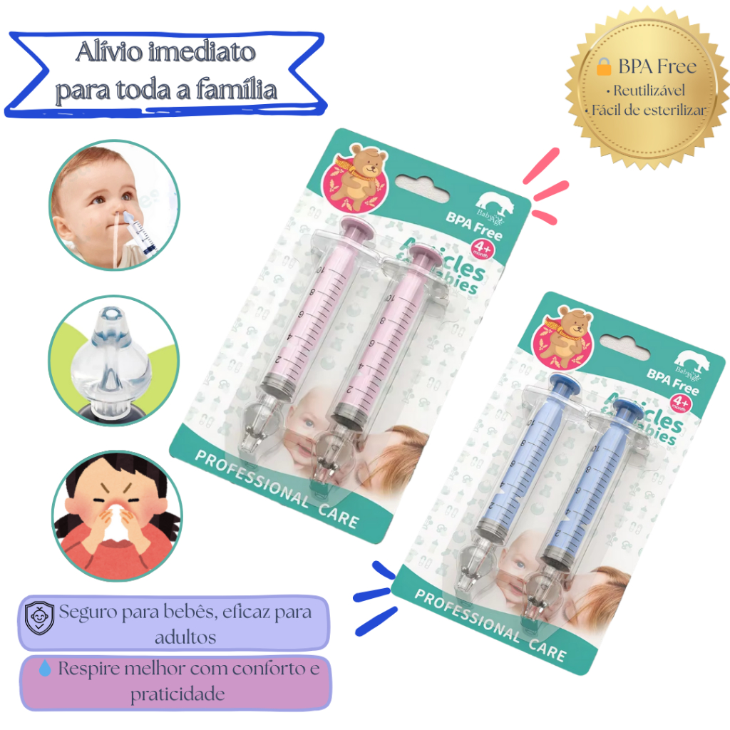 Comprar na ShopeeKit 2 Seringas Nasal Aspirador Manual – Limpeza Nariz Bebê, Criança e Adulto – BPA Free, Bico de Silicone, Reutilizáve