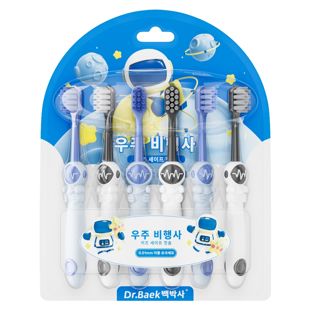 Dr. Baek Space Astronaut Escova de dentes infantil, pacote de 6 peças de 3-12 anos, adequada para limpeza de divisórias