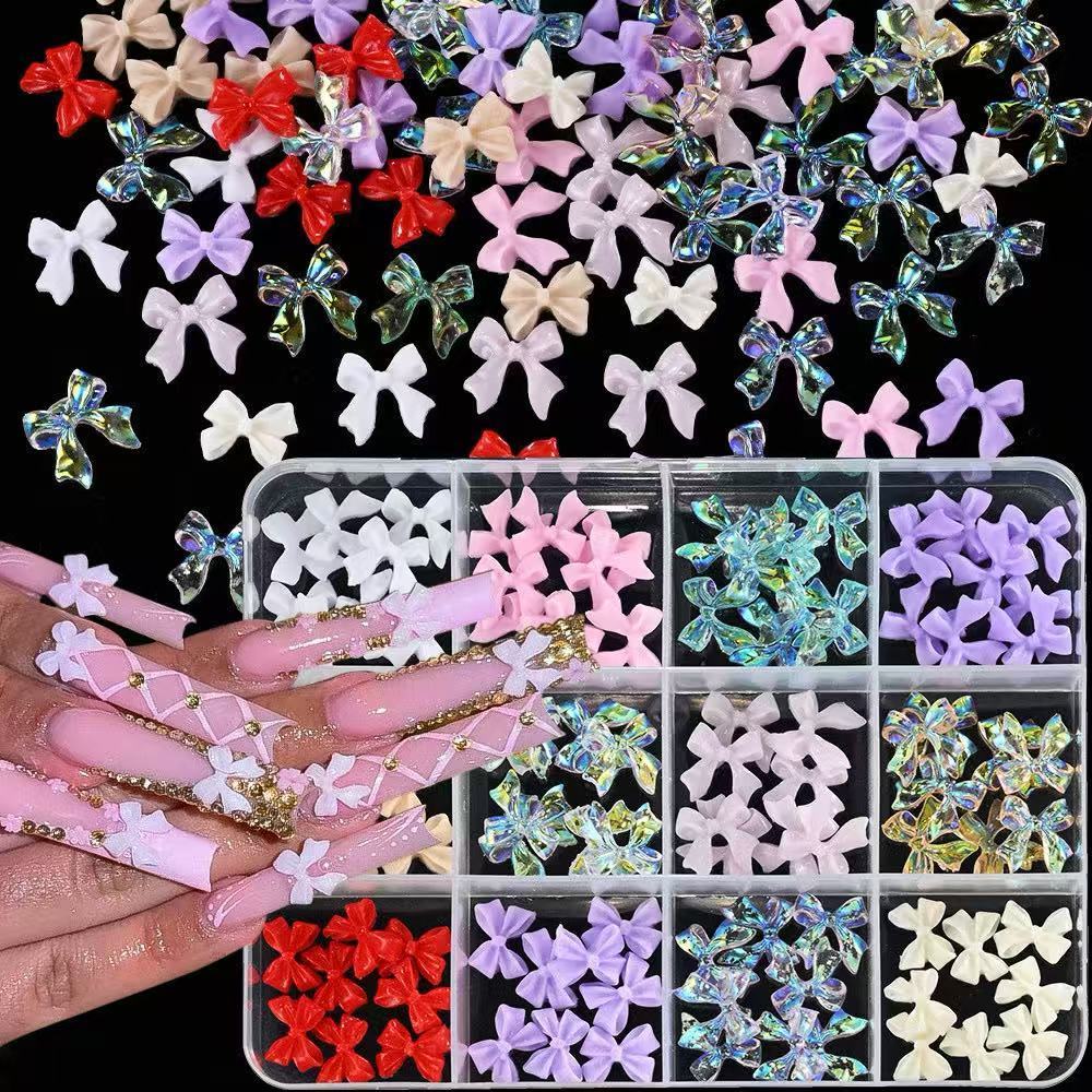 Comprar na ShopeeCaixa 12 Grade Resina Bowknot Prego Encantos 3D Colorido Misturado Decoraçõe Da Arte Do Prego Ferramenta Manicure