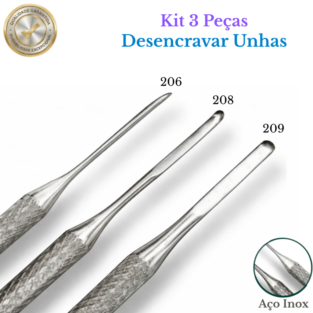 Kit 3 Pcs Espátula Bisturi Goiva 206 208 209 Nuclear pedicure podóloga desencravar remover unha encravada do pé