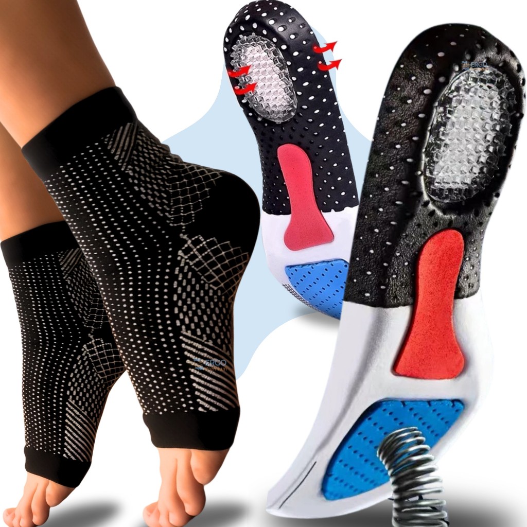 Combo Meia Ortopédica + Palmilha Alívio de Dores no calcanhar, Inchaço, Esporão e Fascite Plantar