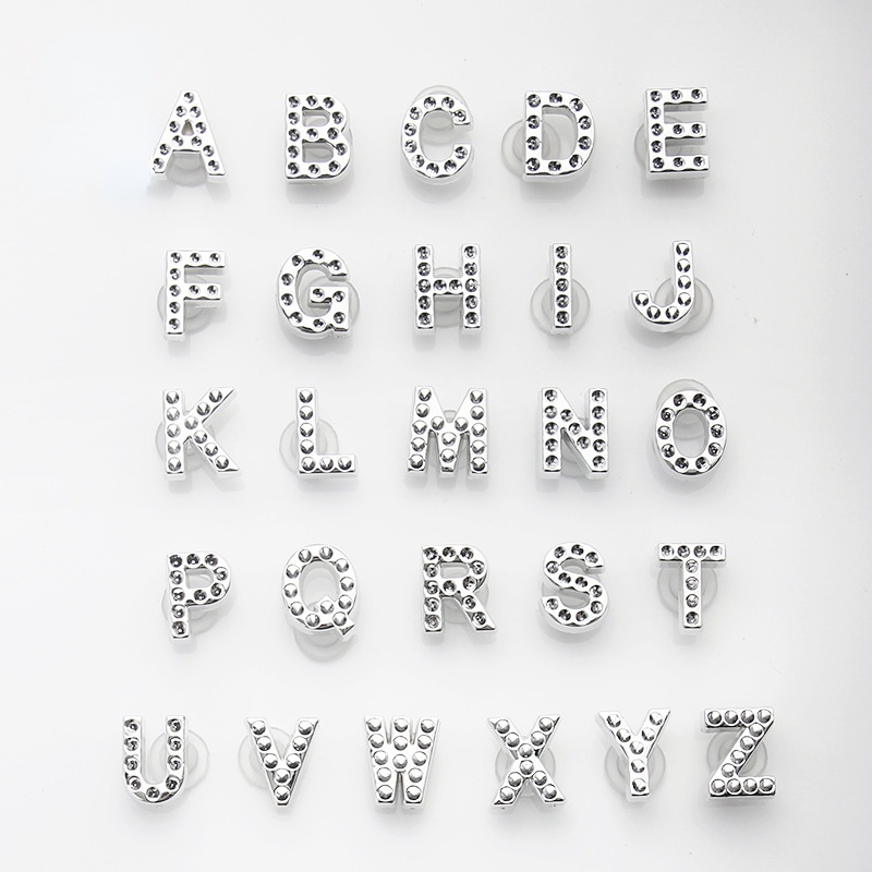 Acessórios para sandálias Pinos 26 Letra A-Z Sapatos De Botão De Prata Para Bricolage