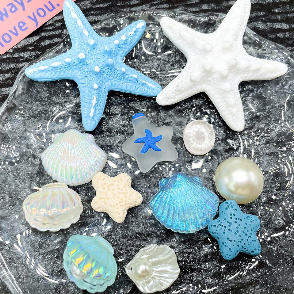 Encantos De Sapato Azul estrela do mar shell pérola DIY Decoração botons Sapato Charms Acessórios pingente