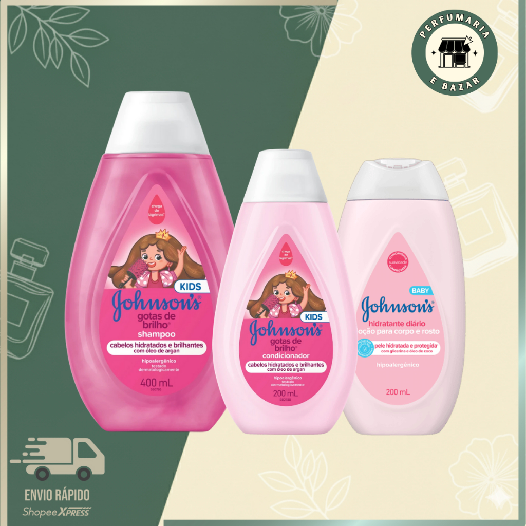 Comprar na ShopeeKIT JOHNSON'S BABY Gotas de Brilho - Shampoo + Condicionador + Loçao Hidratante