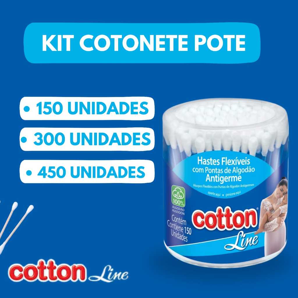 Comprar na ShopeePote De Cotonete Hastes Flexíveis 150 /300 ou 450 Unidades Cotton Line Azul