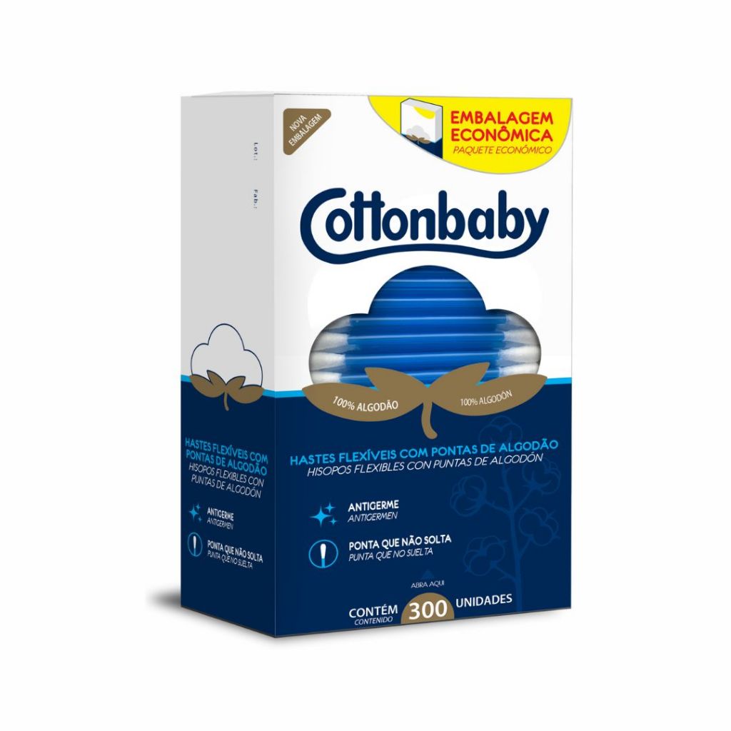 Comprar na ShopeeHastes Flexíveis Cottonbaby 300 Unidades 100% Algodão