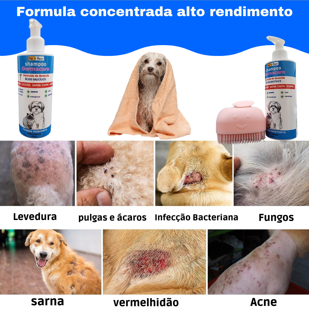 Shampoo Dermatológico Sarna Negra Coceira e Dermatite em Cães e Gatos - Fórmula Antisseborreica - Peroxido Benzoila