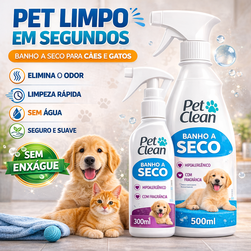 Comprar na ShopeeShampoo Spray Banho a Seco Sem Enxágue Pet Clean Cachorro 500ml ou Gato 300ml - Envio Imediato