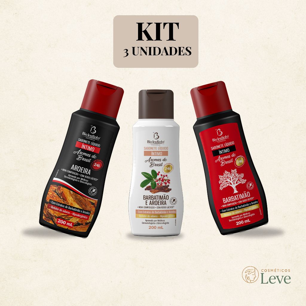 Comprar na ShopeeKit com 3 Sabonete Íntimo Líquido Barbatimão + Aroeira + Barbatimão c/ Aroeira Bio Instinto